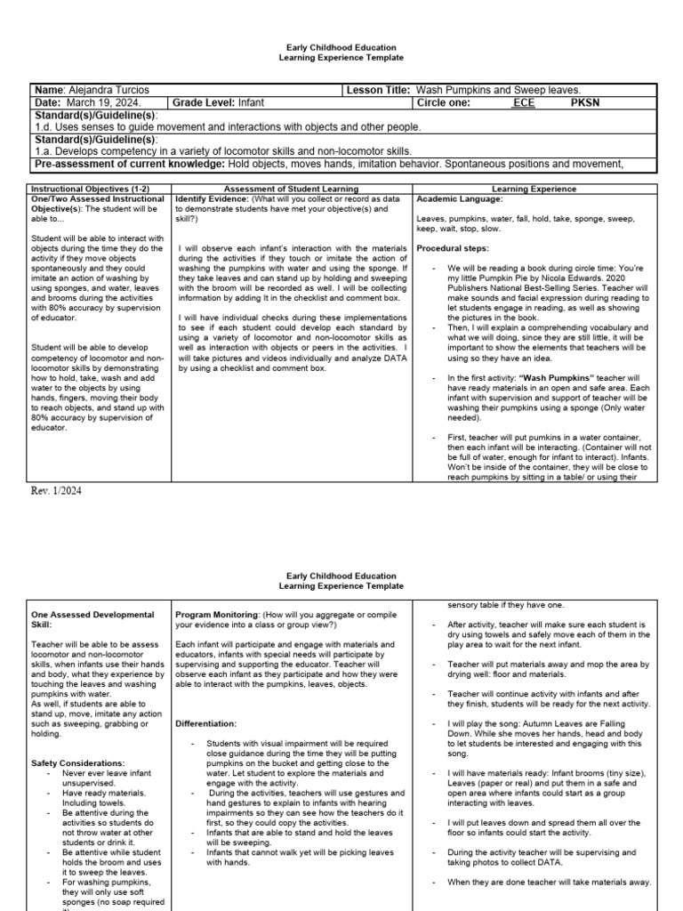 Ece Lesson Plan Template Drama Lesson Alejandra Turcios VF Infant April