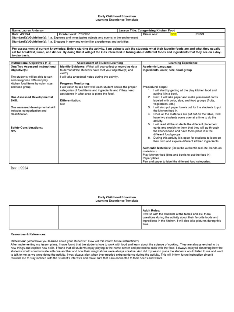 ECE 315 Week 4 Assignment Lesson Plan Sample and Template docx Lesson