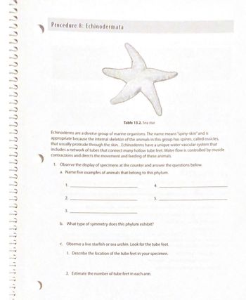 Answered: Echinoderms are a diverse group of bartleby Worksheets