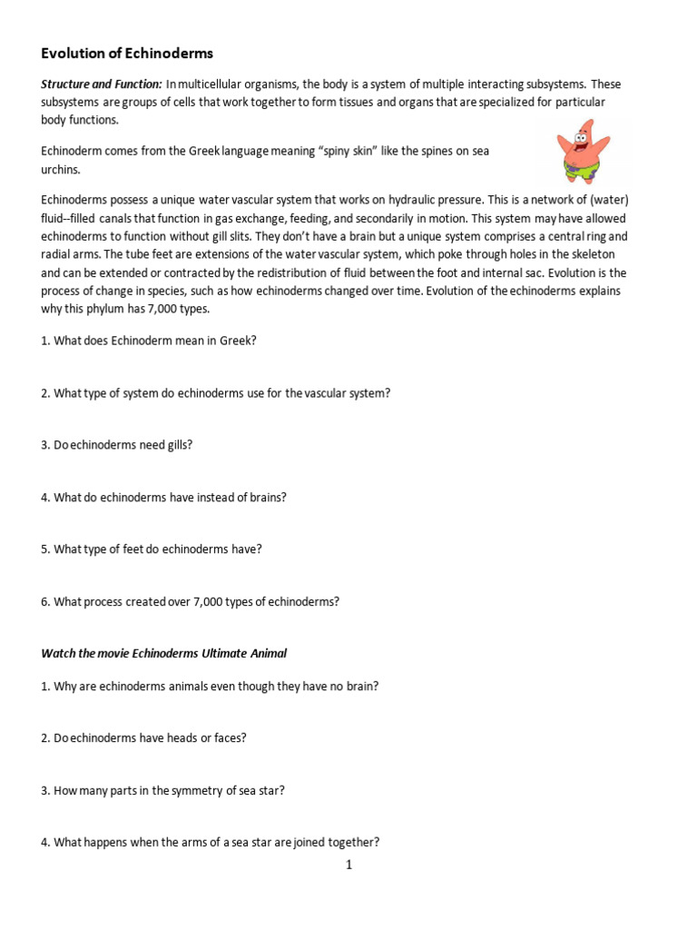 Echinoderms Worksheet Answer Key