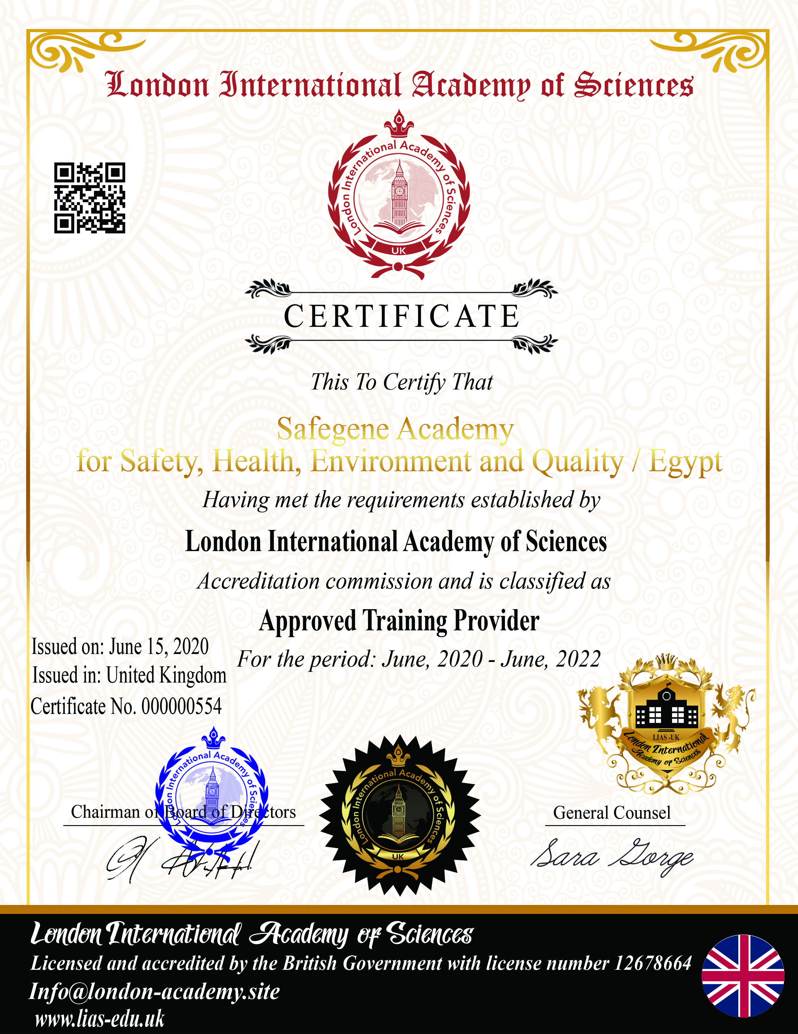 The Certificates أكاديمية سيفجين الدولية للسلامة والصحة المهنية