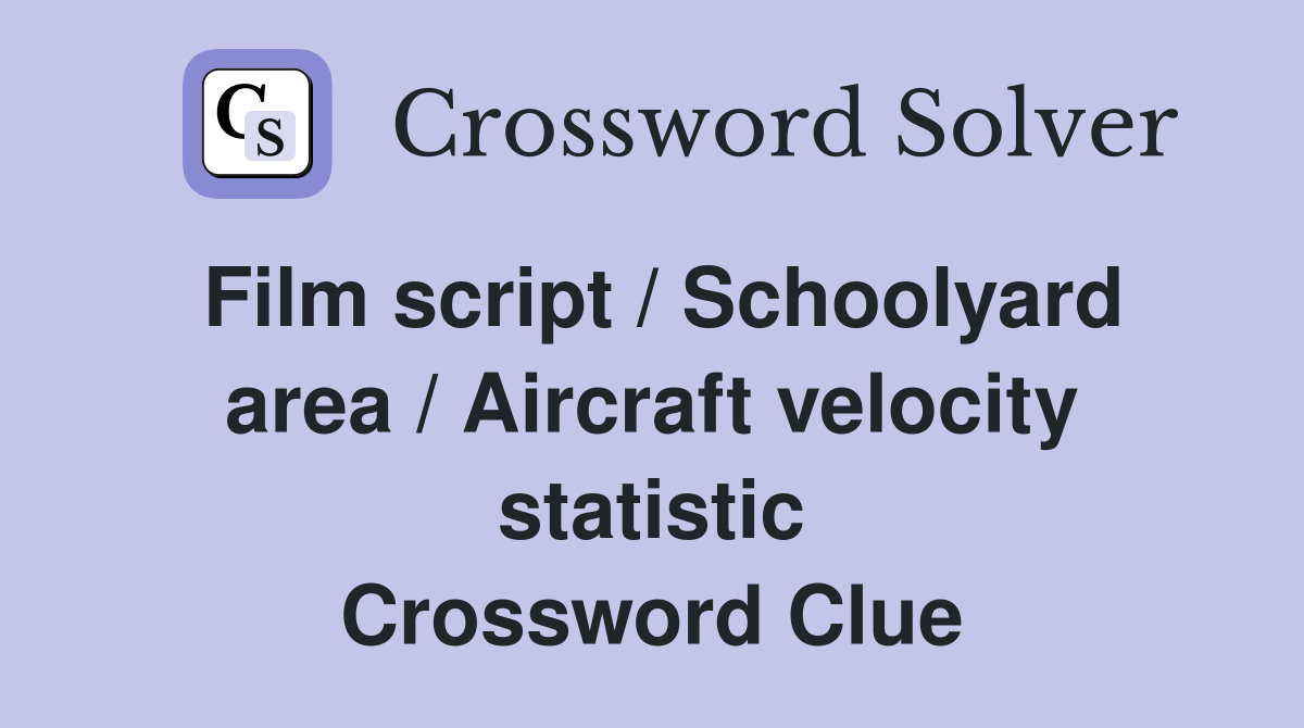 Film script / Schoolyard area / Aircraft velocity statistic Crossword