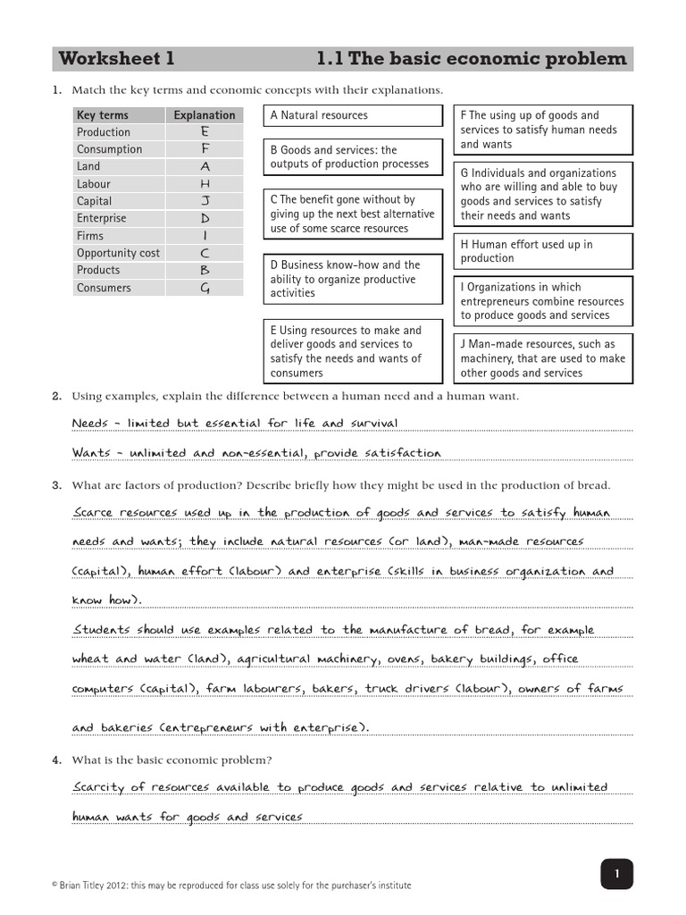 Economics Factors Of Production Worksheet Answers