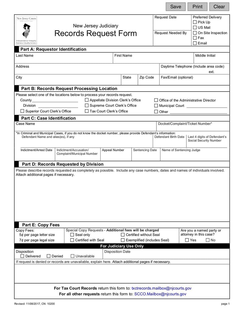Fillable Online NEW JERSEY JUDICIARY Records Request Form Fax Email