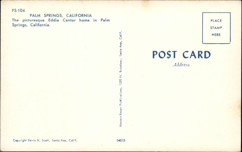 Eddie Cantors Home Palm Springs California vintage postcard k504 eBay