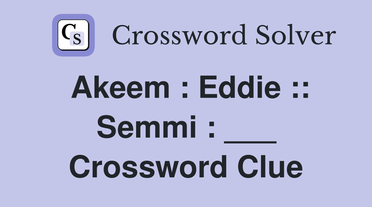 Akeem : Eddie :: Semmi : Crossword Clue Answers Crossword Solver