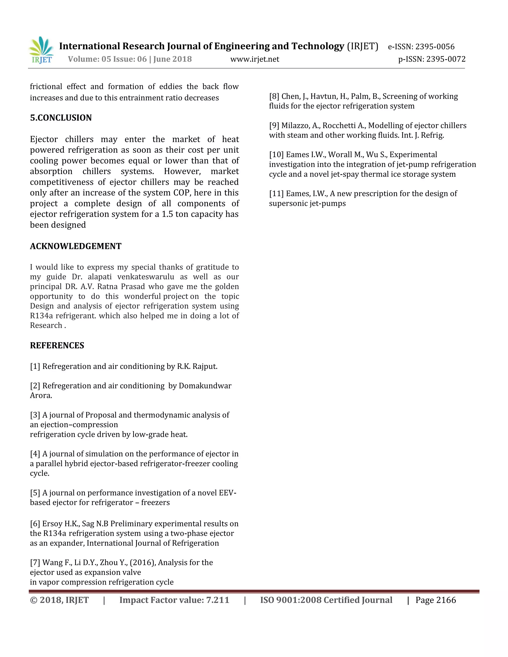 IRJET Design and Analysis of Ejector Refrigeration System using R 134a