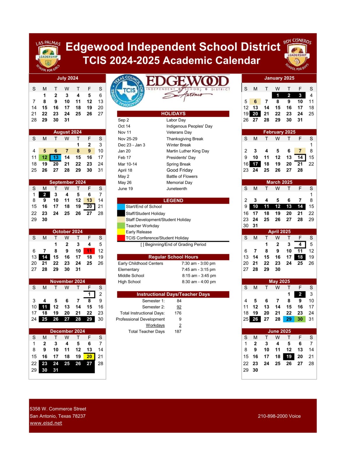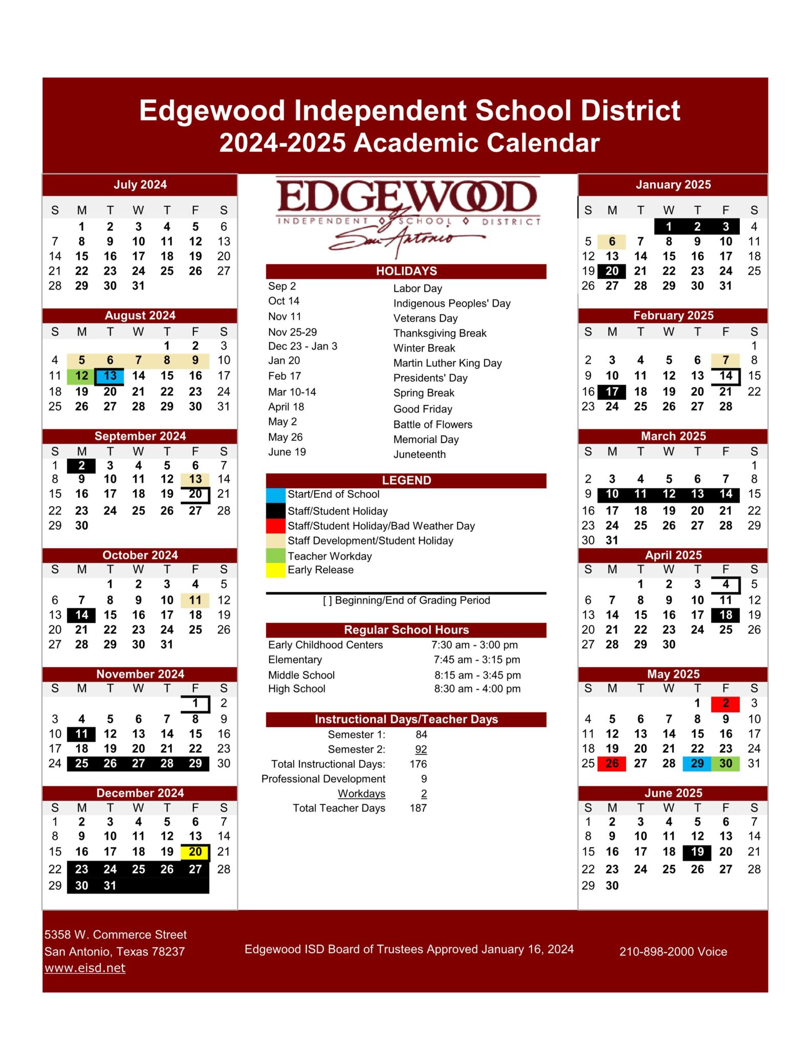 EDGEWOOD ISD School Calendar 24 25 PDF EduCounty