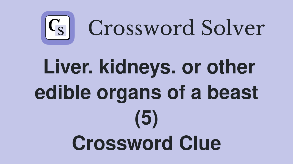 Liver kidneys or other edible organs of a beast (5) Crossword Clue