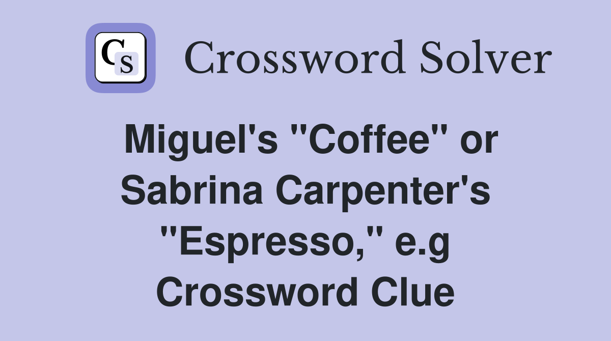 Miguel #39 s quot Coffee quot or Sabrina Carpenter #39 s quot Espresso quot e g Crossword
