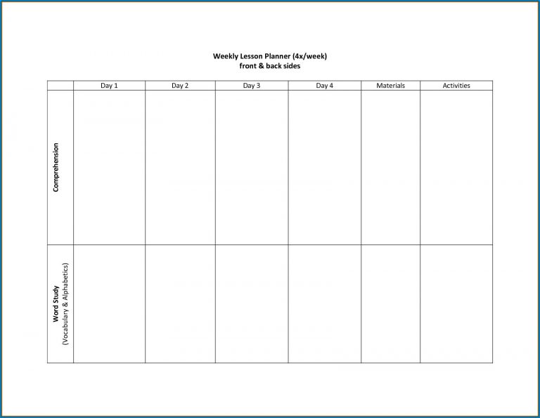 Perfect Four Week Weekly Calendar Printable Excel calendar template