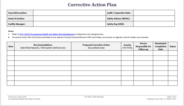 Action Plan Template Word Free Download