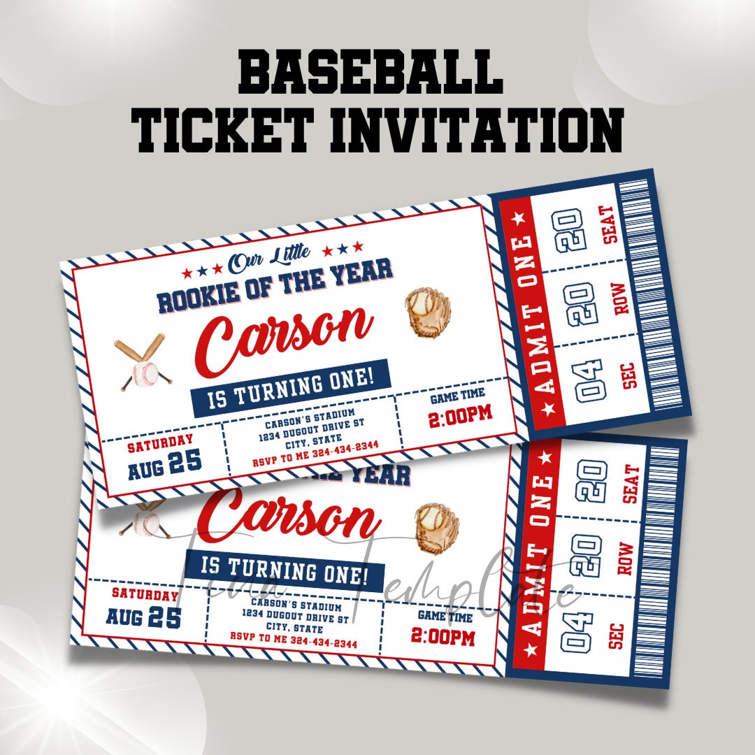 Baseball Game Ticket Editable Baseball Ticket Gift Birthday Baseball