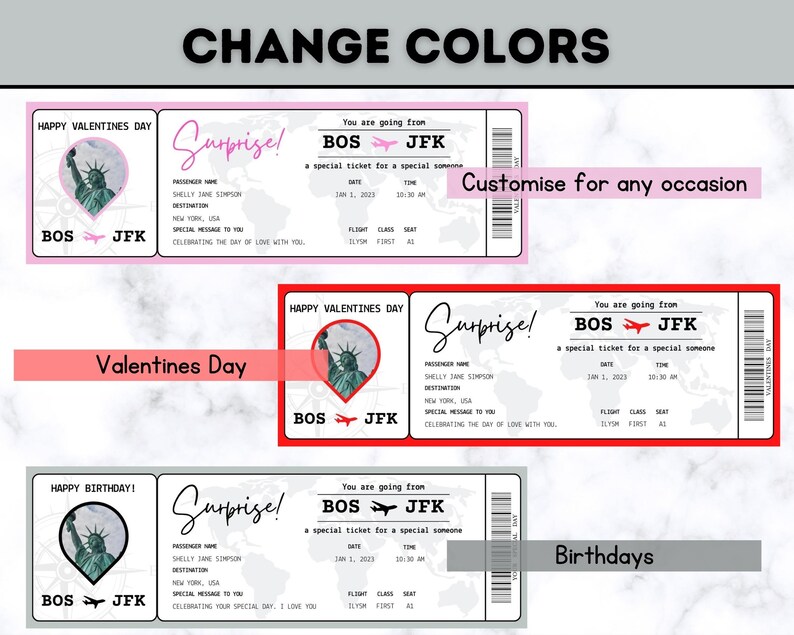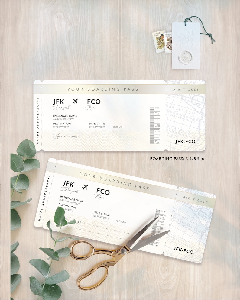 Editable boarding pass ticket template surprise airline gift fake