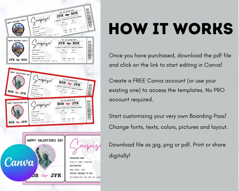 Editable Boarding Pass Template: Canva Customizable Plane Ticket