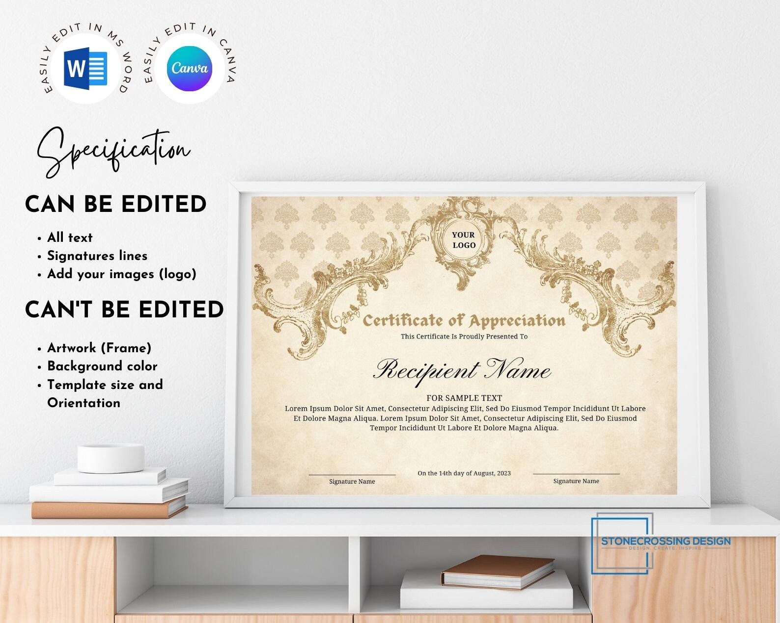Editable Certificate of Appreciation Template Award Template Etsy