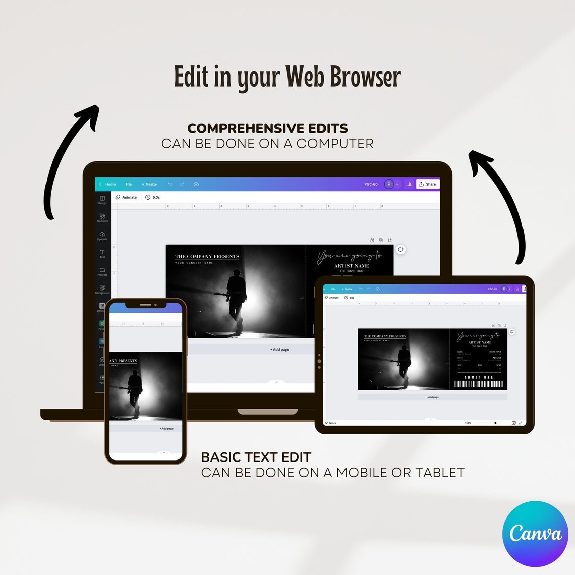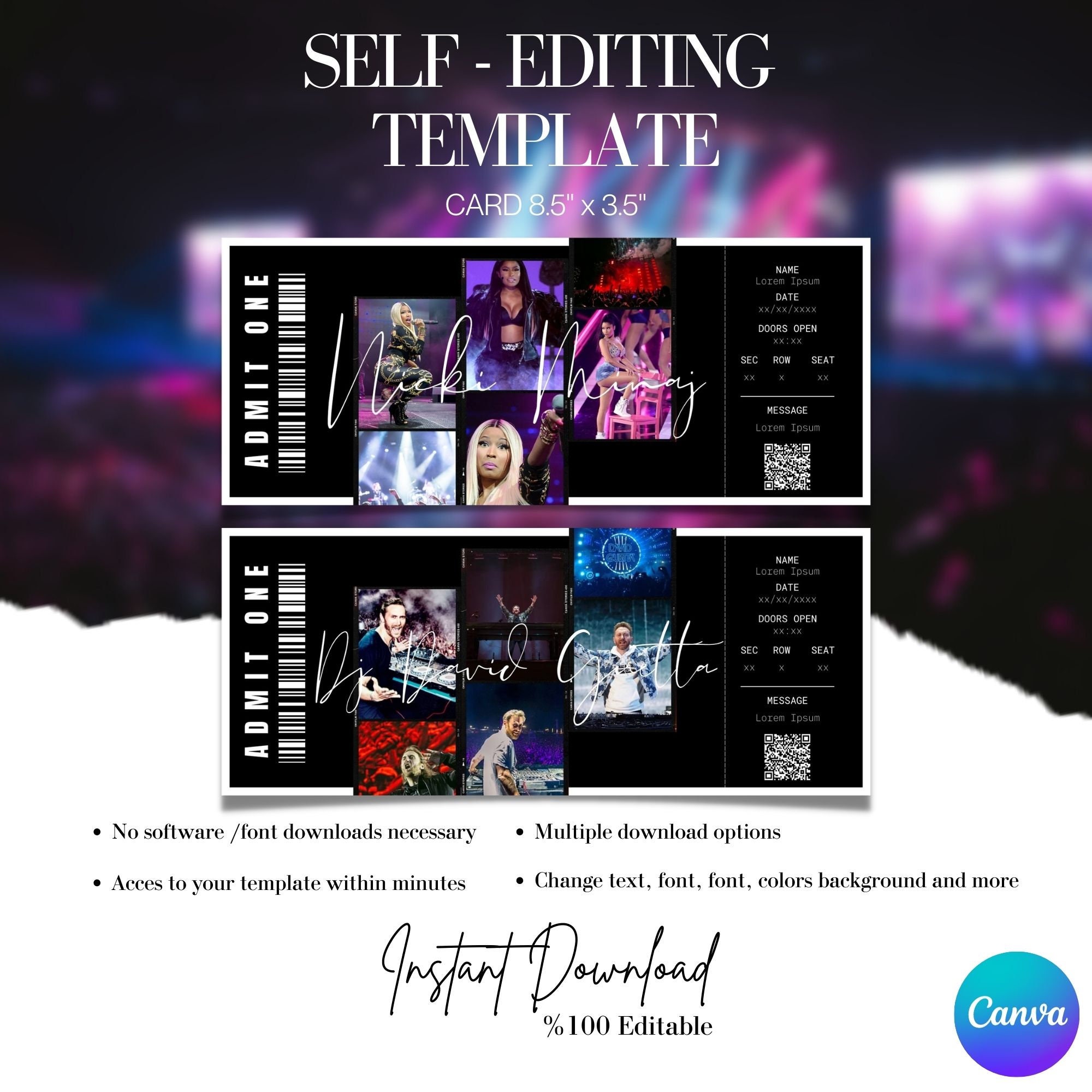 Editable Concert Ticket Template DIY Event Ticket Custom Concert