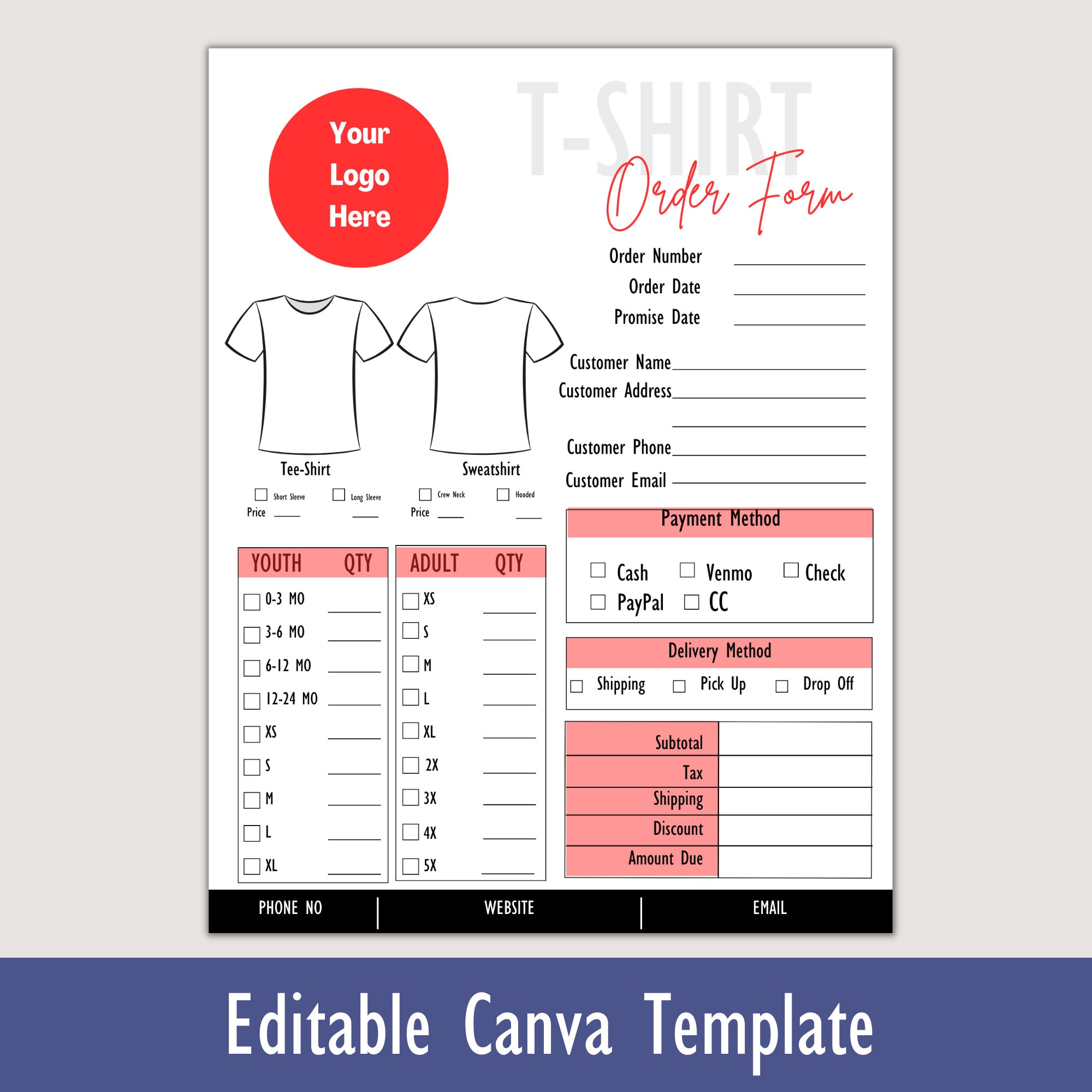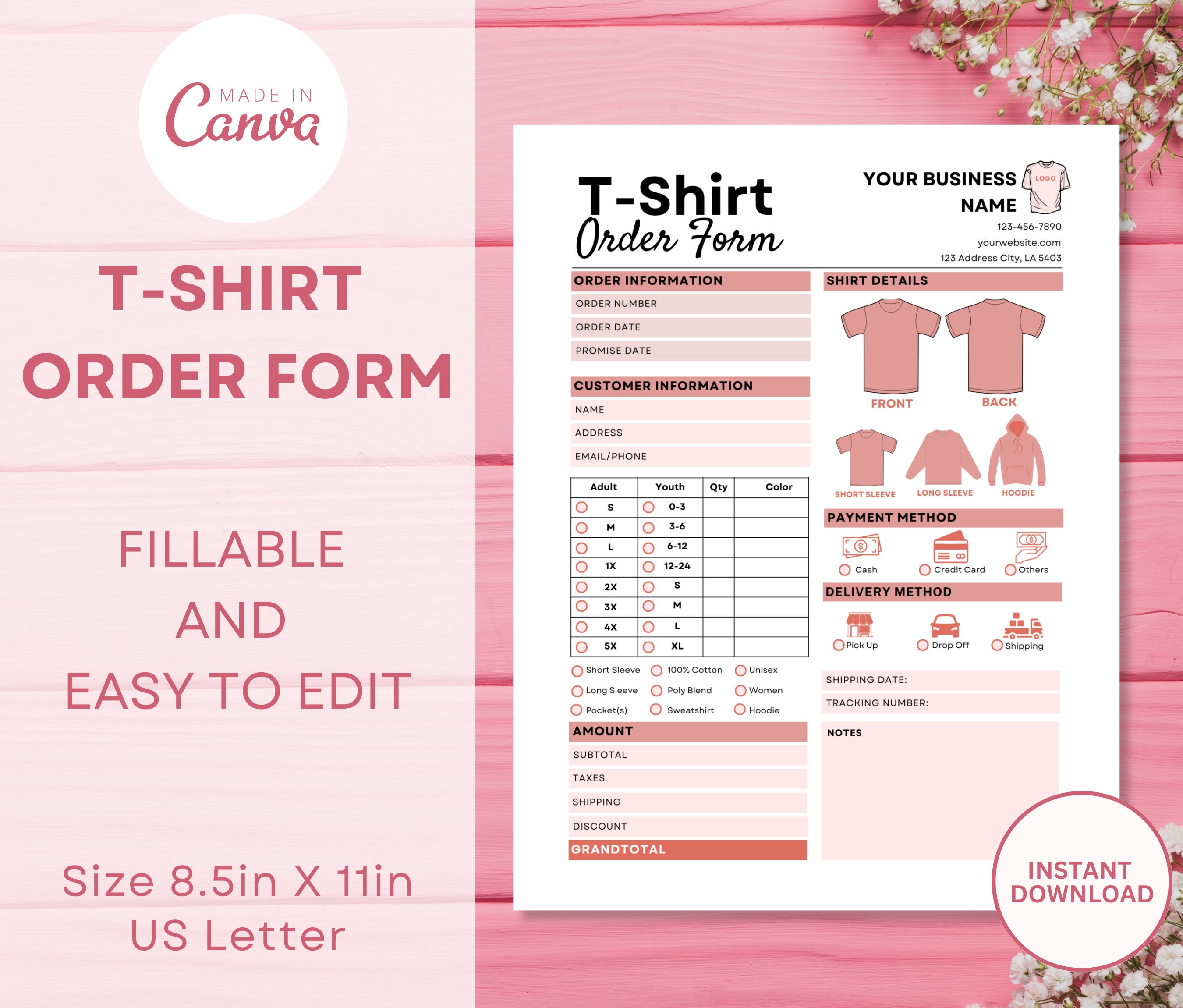 T shirt Order Form Template Customizable Order Form Printable Etsy