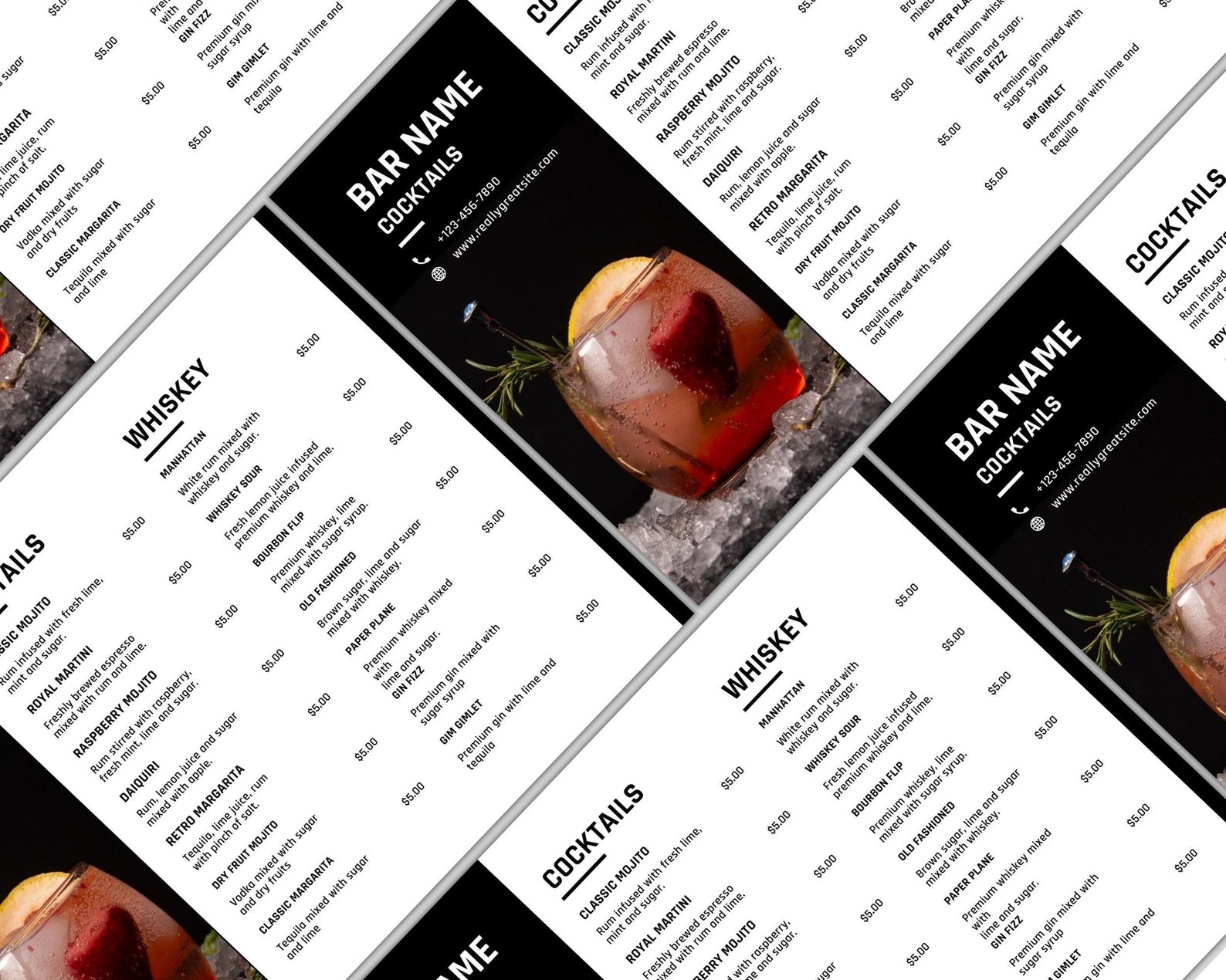Bar menu template modern editable drink menu template minimalist