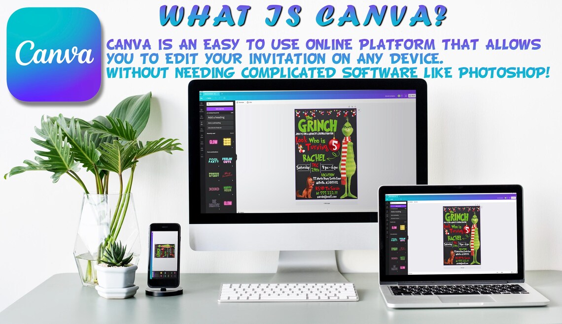 Editable Grinch Christmas Party Invitation: Canva Template (5x7 Inch