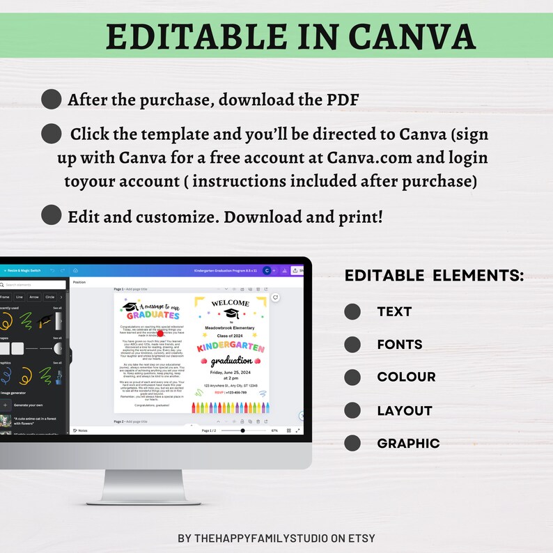 EDITABLE Kindergarten Graduation Program Template by FUNNY BUNNY