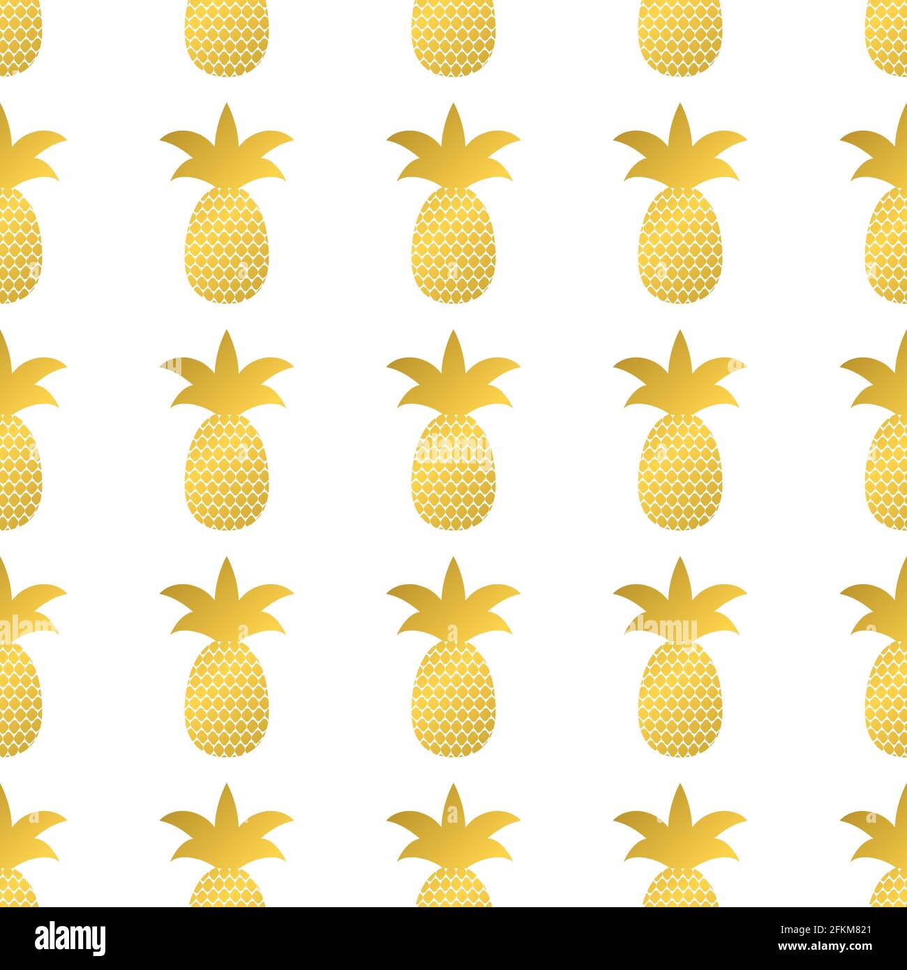 Seamless pattern with gold pineapple on white background Golden