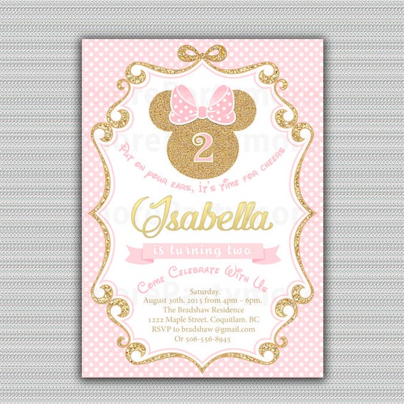 EDITABLE Pink Gold Minnie Mouse Invitation Gold Glitter Etsy