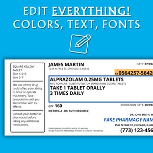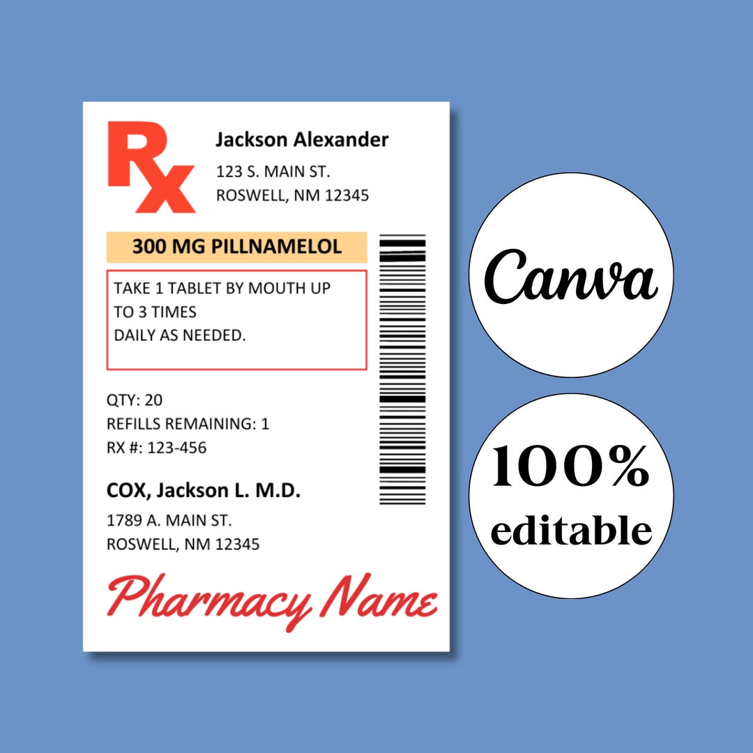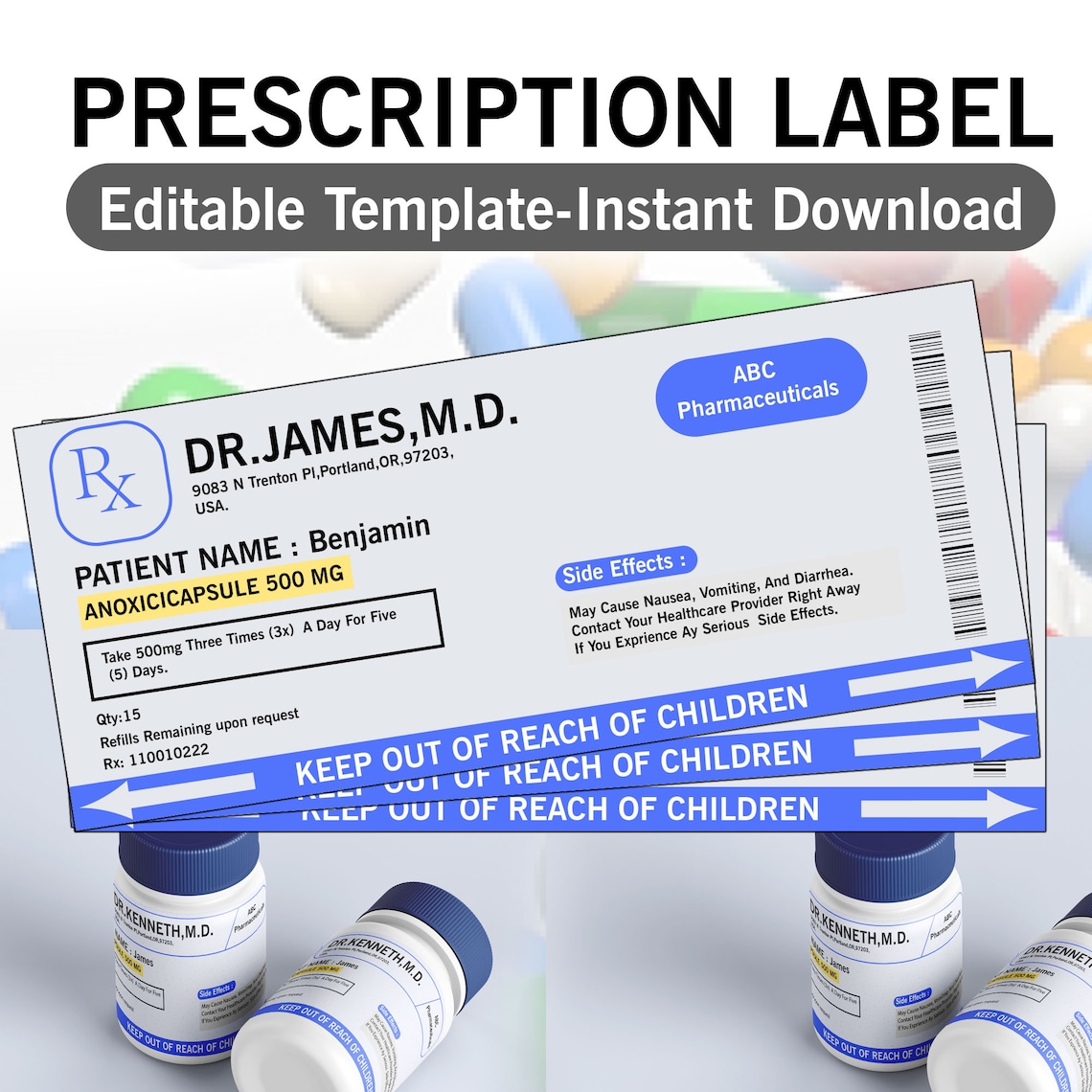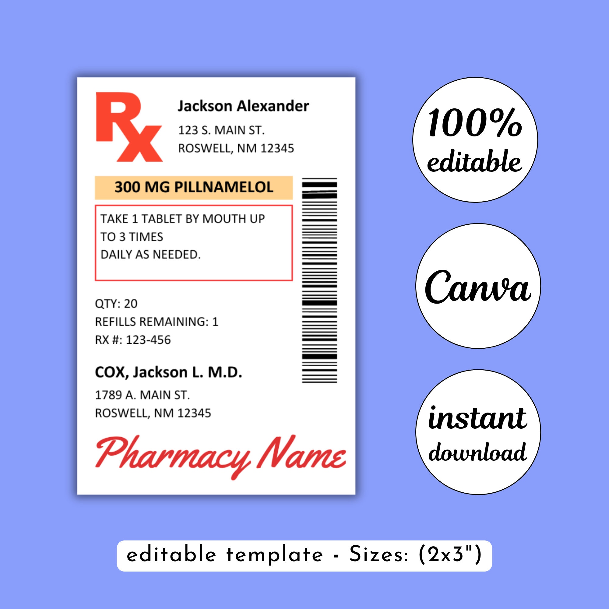 Prescription Label Template Editable RX Bottle Label Fun Pill Bottle