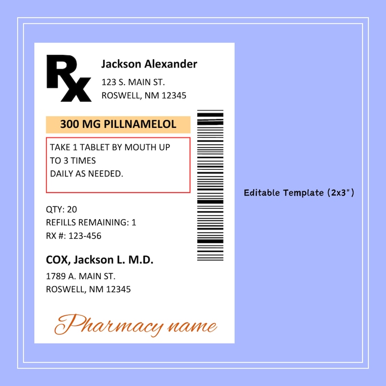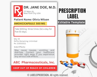 Editable Prescription Label Template Pill Bottle Label RX Label