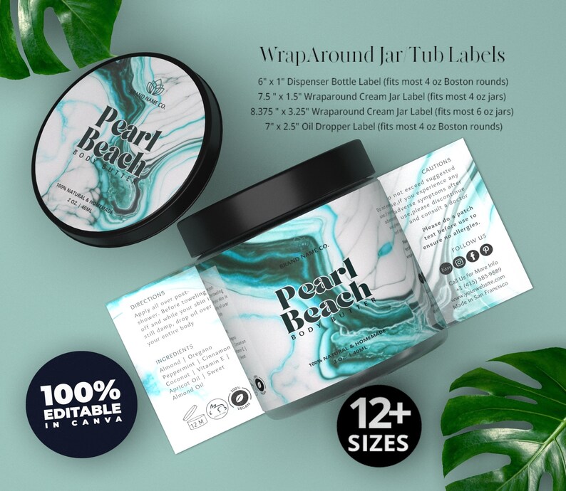 Pearl Beach DIY 100% Editable Product Label Templates body Butter Body