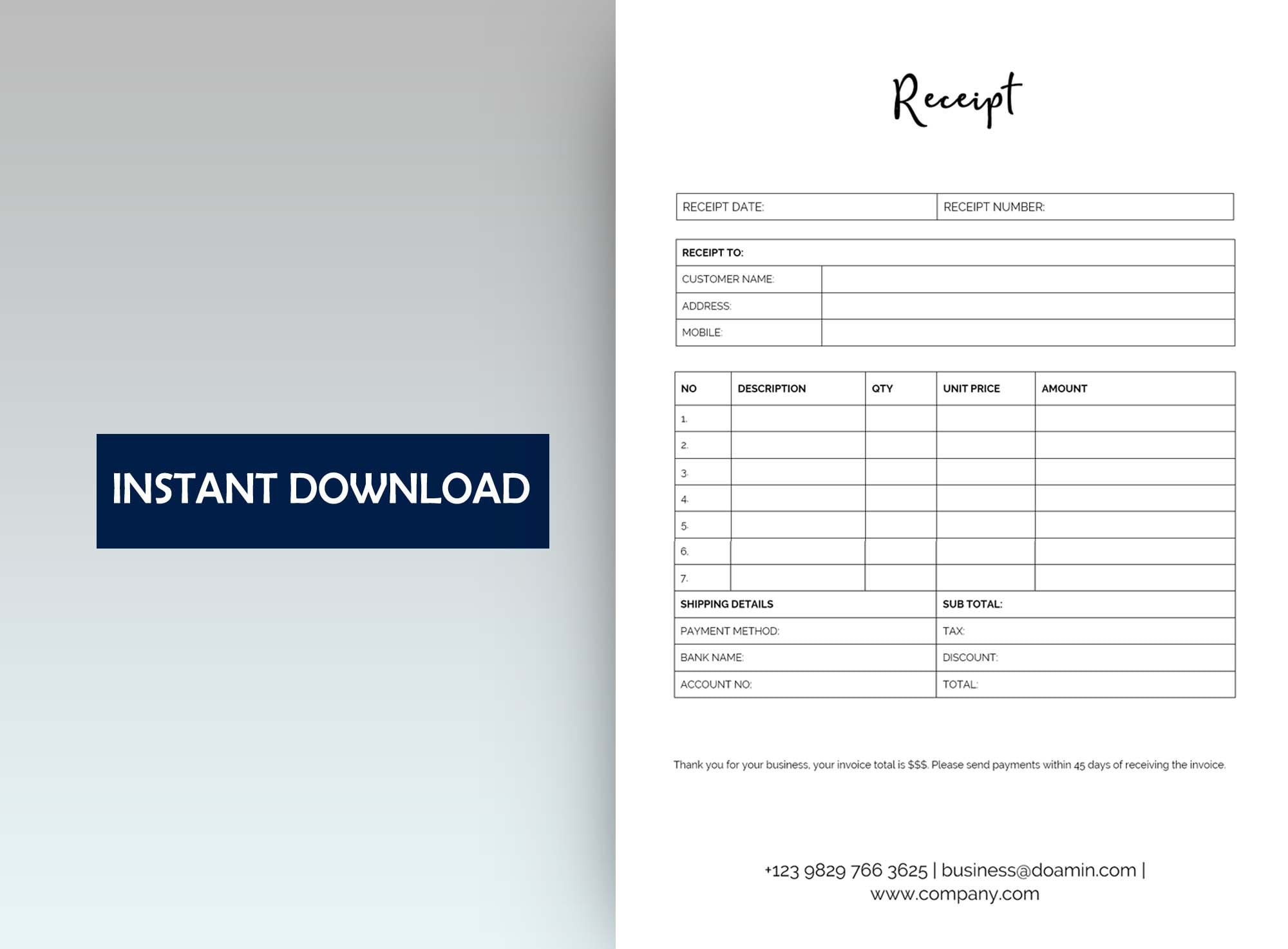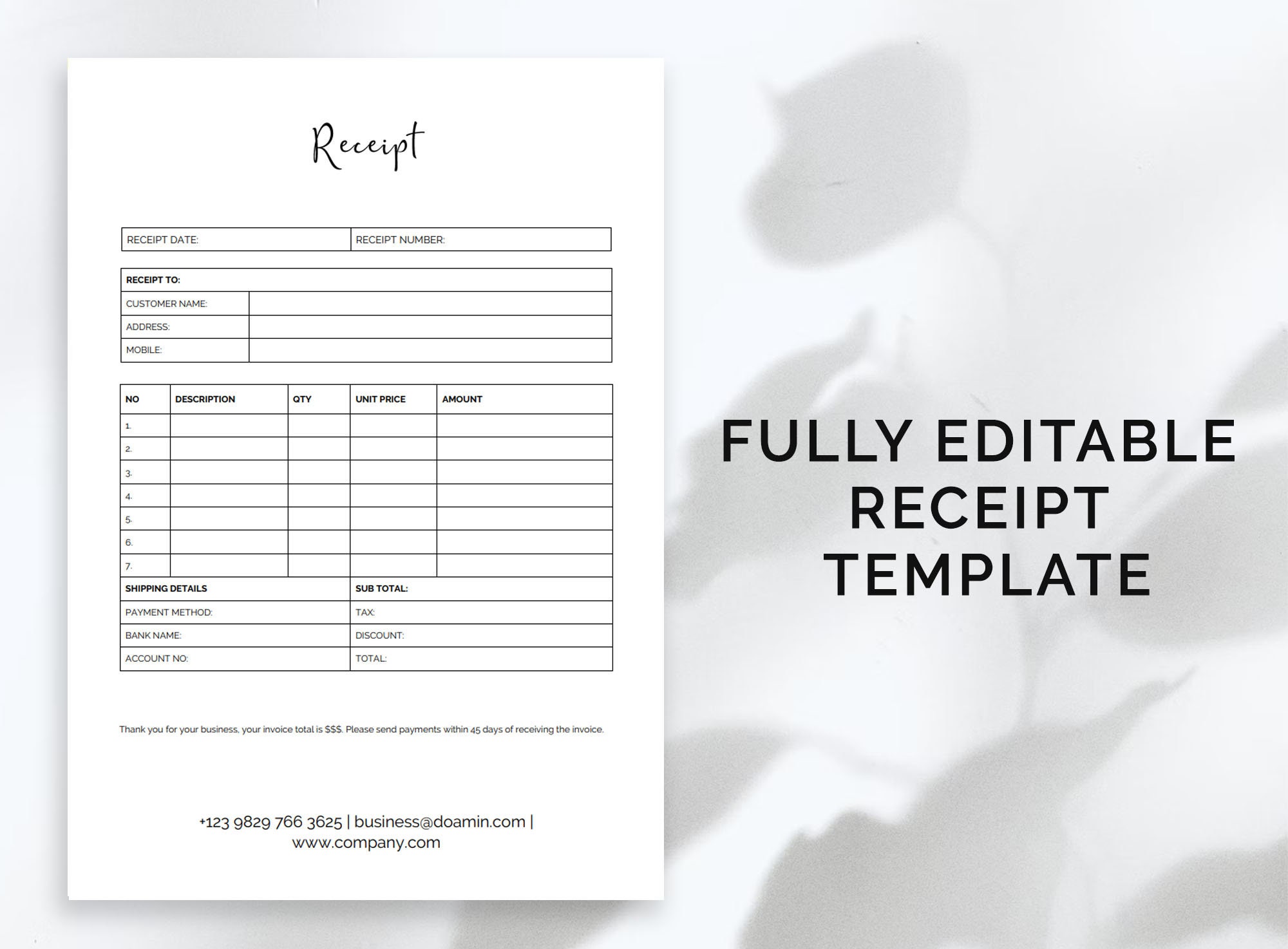 RECEIPT TEMPLATE Editable Word Google Docs Fully Editable Etsy UK