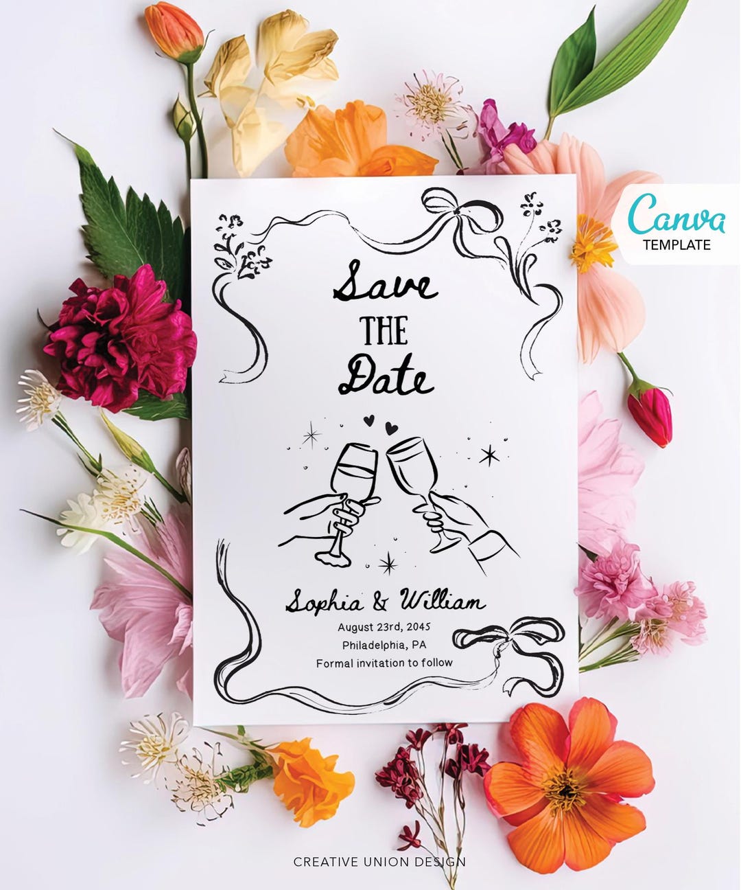 Editable Save the Date Template Whimsical Hand Drawn Wedding Save the