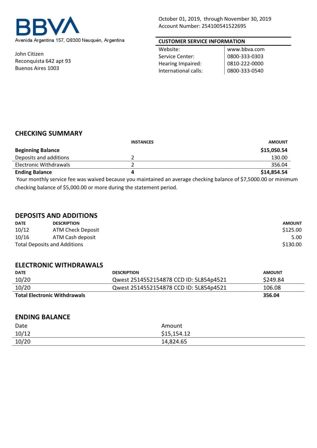 Argentina BBVA Proof Of Address Bank Statement Template In Word And PDF