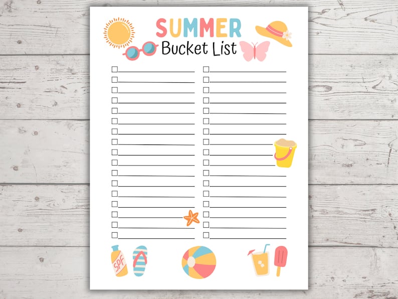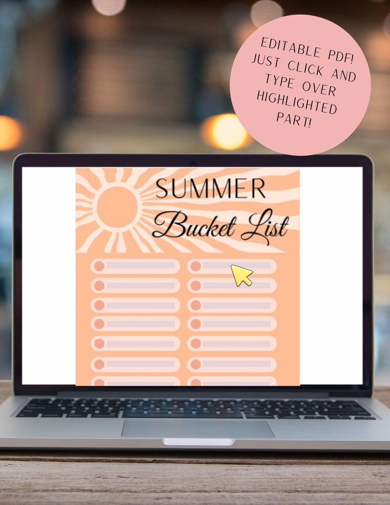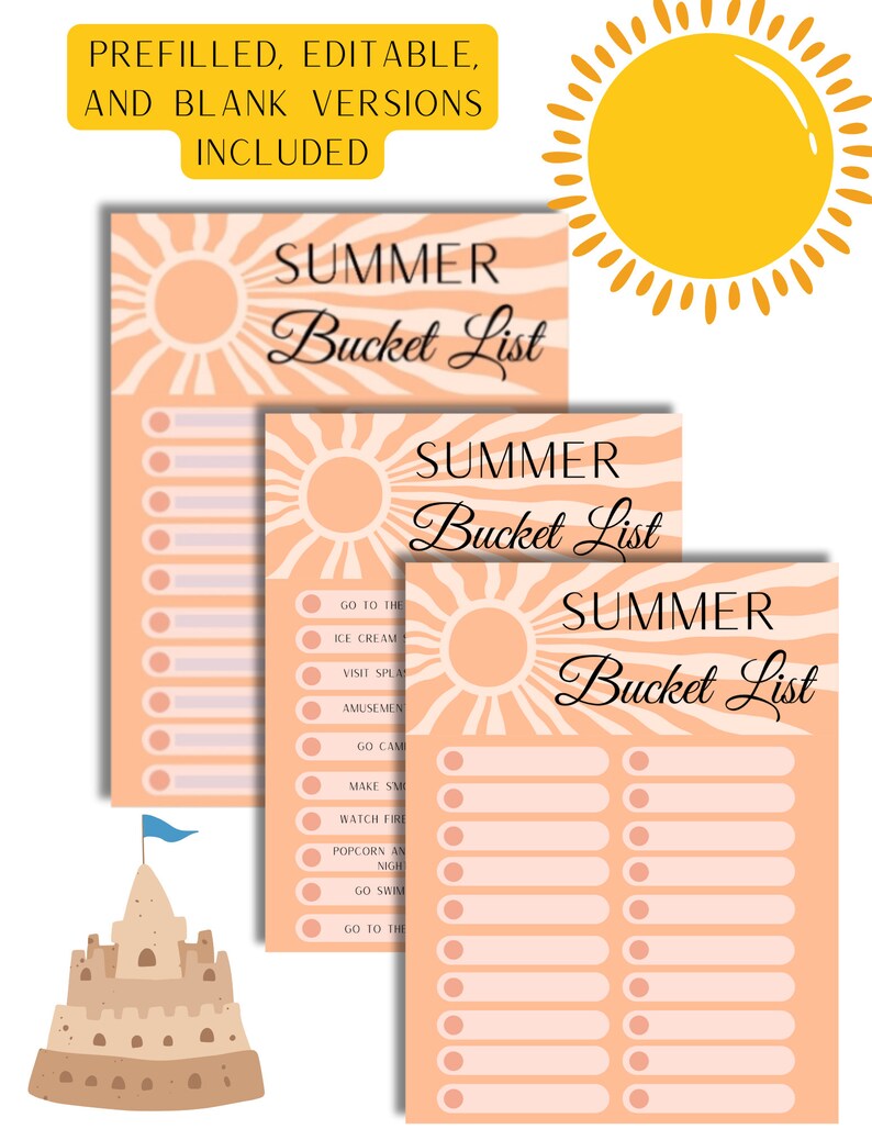 Editable Summer Bucket List Template Fun Customizable Printable for