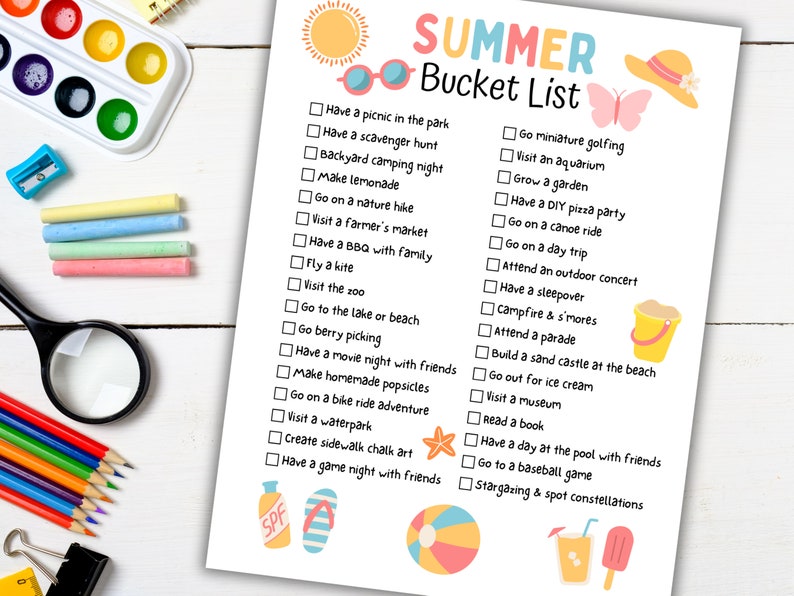 Personalized Editable Summer Bucket List Template Kids Summer Bucket
