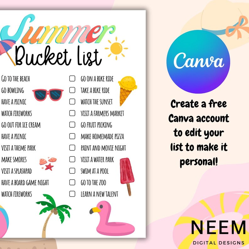 Instant Download Summer Bucket List Templates Editable in Canva 40