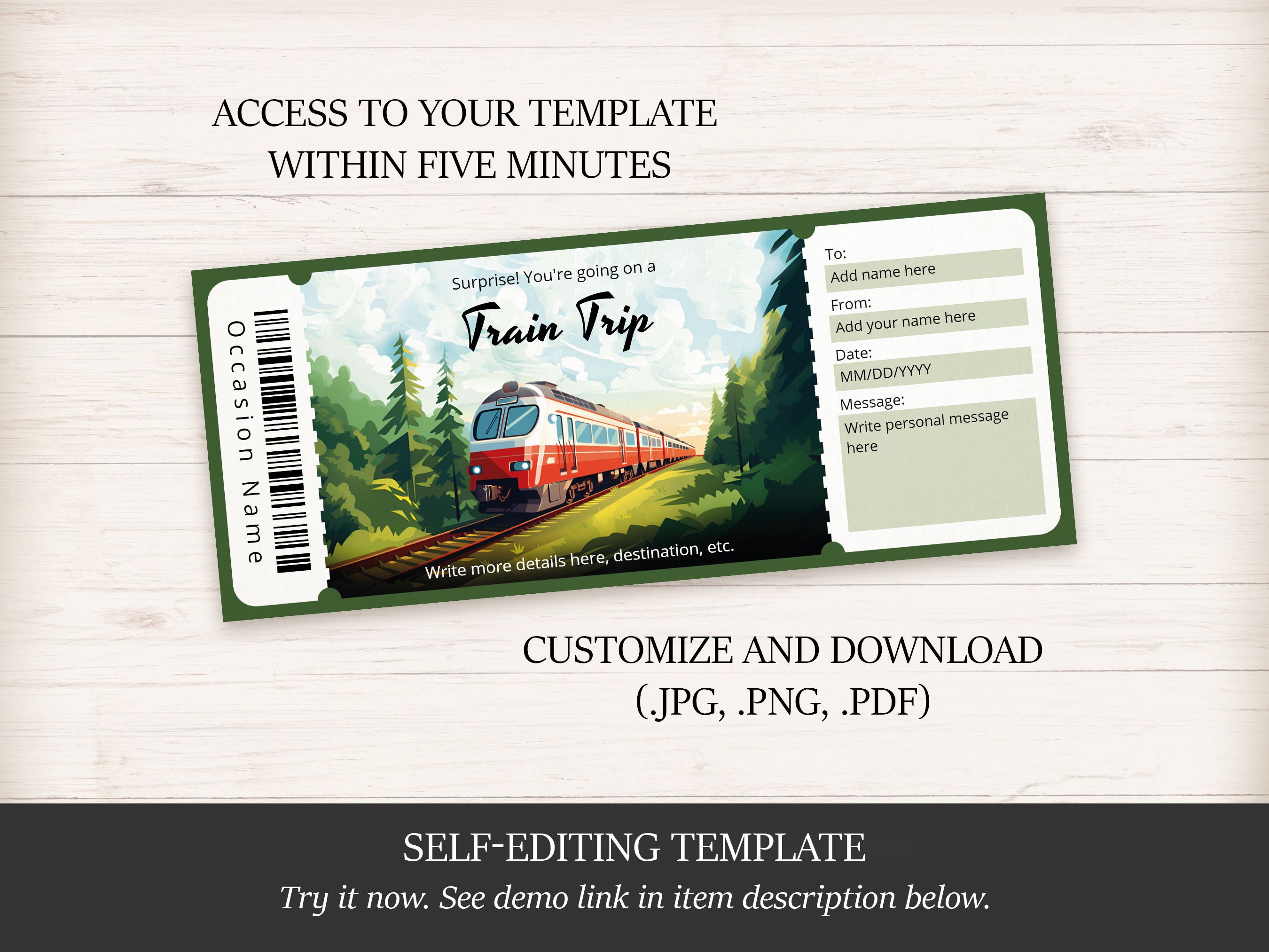 Editable Train Ticket Template Custom Train Trip Coupon Personalized
