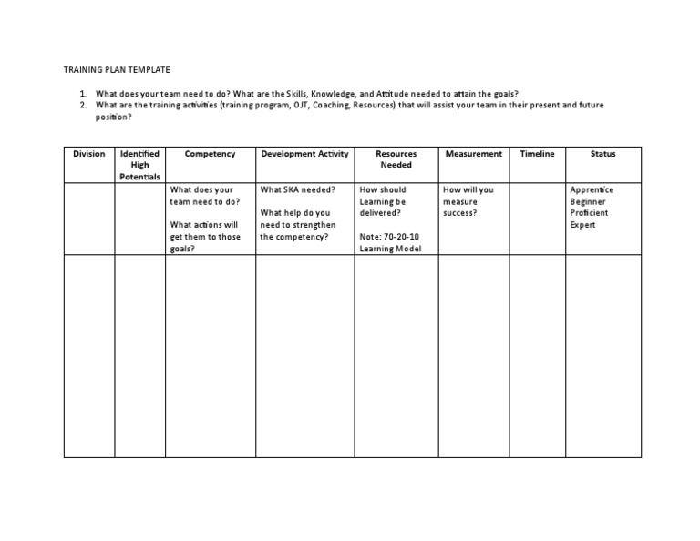 Training Plan Template PDF