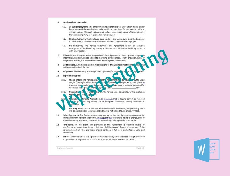 Employment Contract HR Contract Job Agreement New Hire Packet