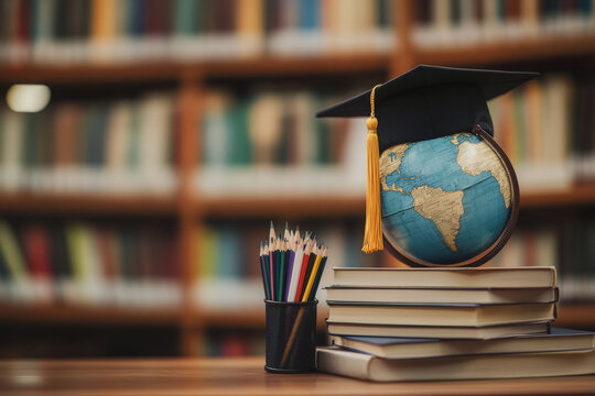 Premium Photo Globe in graduation cap Illustration AI GenerativexA