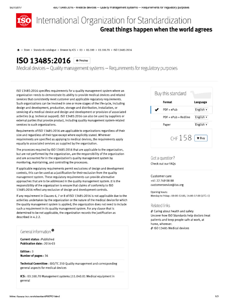 ISO 13485 2016 Medical Devices Qua Requirements For