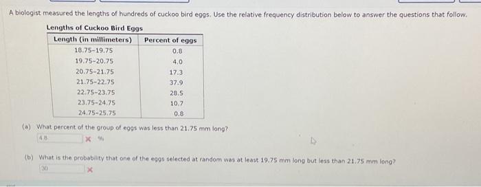 Solved: A biologist measured the lengths of hundreds of cuckoo bird