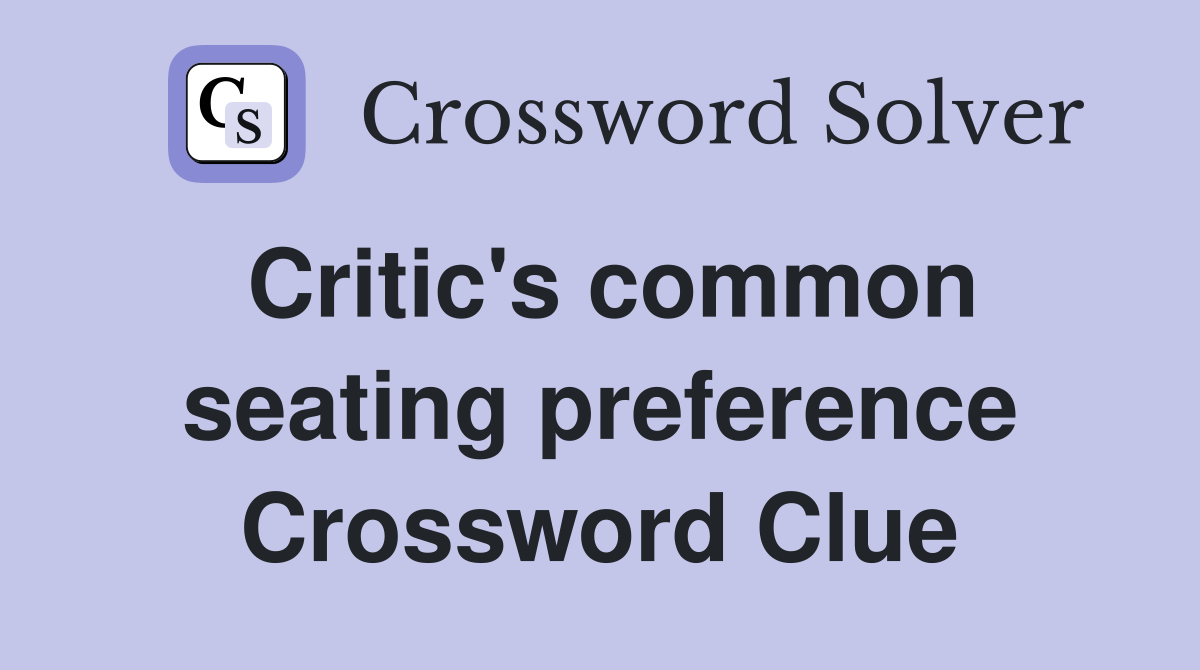 Critic #39 s common seating preference Crossword Clue Answers Crossword