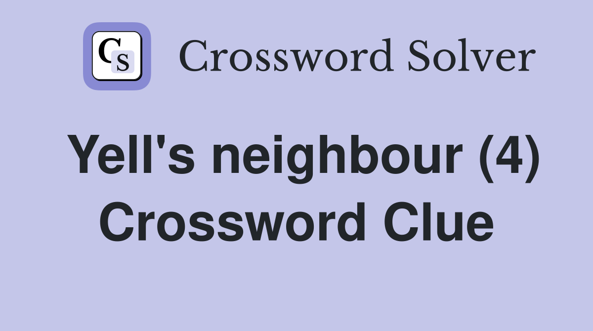 Yell s neighbour (4) Crossword Clue Answers Crossword Solver