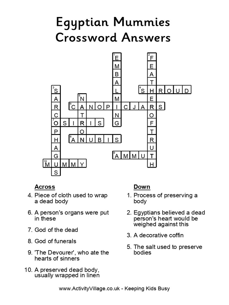 Egyptian Mummies Crossword Answers PDF Ancient Egypt Funeral