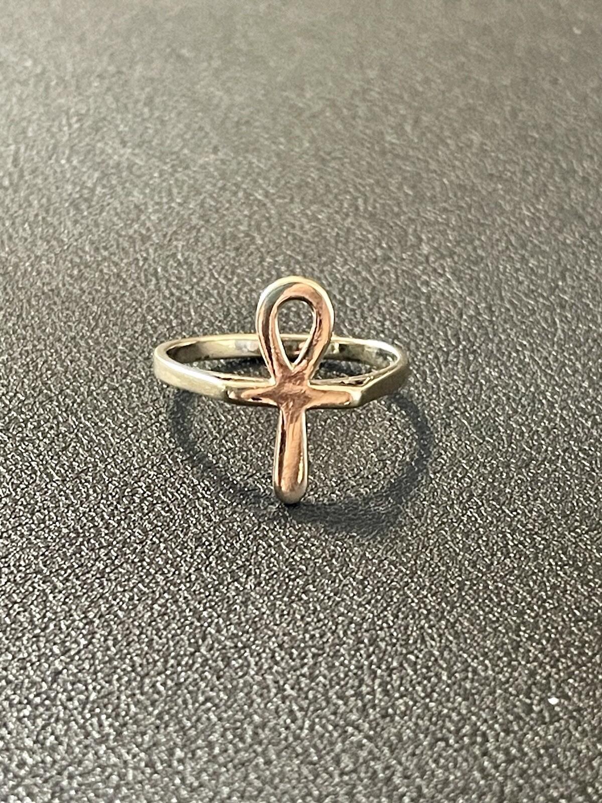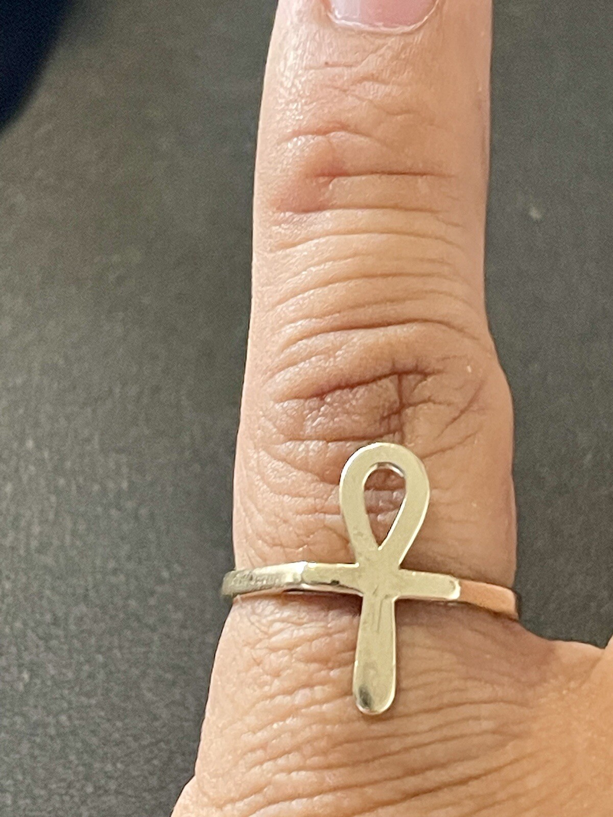 14K Yellow Gold Ankh Ancient Egyptian Life Symbol Rin Gem