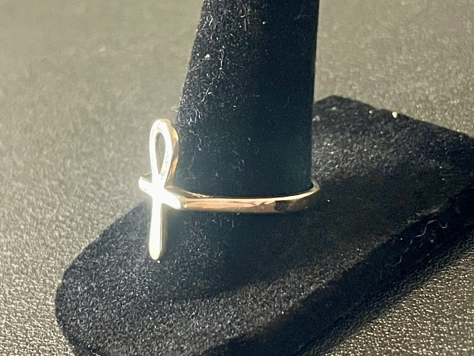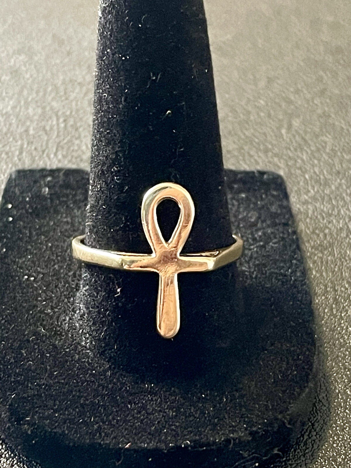 14K Ankh Ancient Egyptian Life Symbol African Yellow Gold Ring Size 3