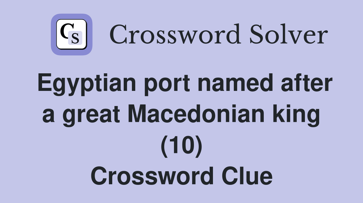 Egyptian port named after a great Macedonian king (10) Crossword Clue