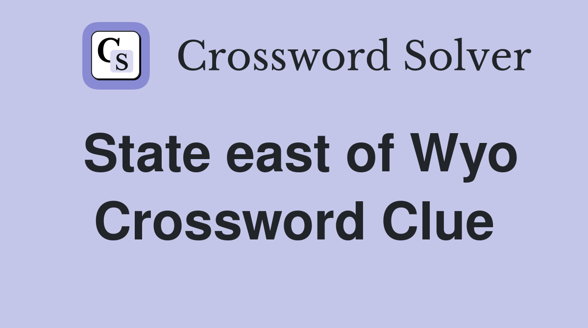State east of Wyo Crossword Clue Answers Crossword Solver