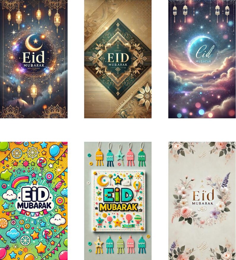 Printable Eid Mubarak Cards Islamic Greeting Cards Pack of 6 Cards